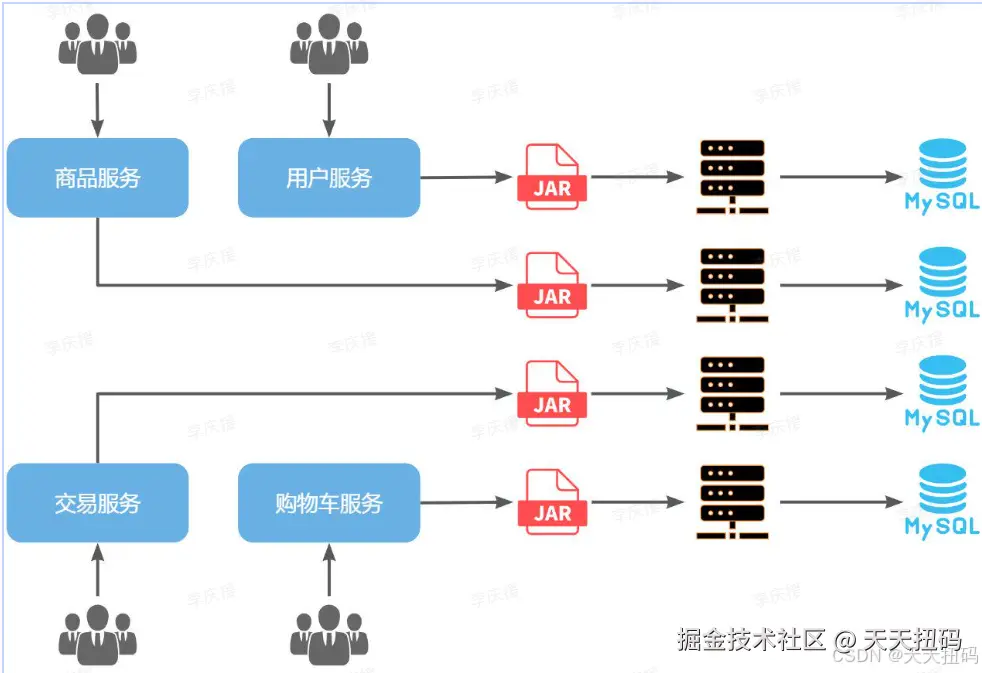 如果这一阶段采用复杂的微服务架构,投入大量的人力和时间成本用于架构设计,最终发现产品不符合市场需求,等于全部做了无用功。