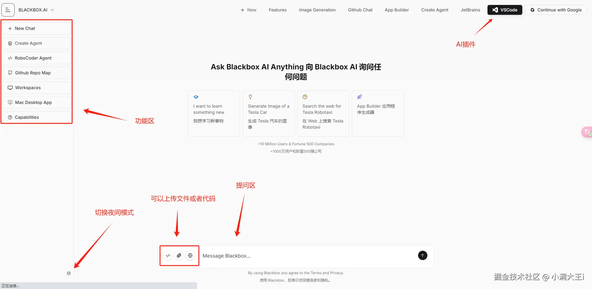 Blackbox.AI在用户体验上也实现了质的飞跃。它提供了直观易用的界面和丰富的功能选项,使得用户无需具备专业的技术背景,也能轻松上手并享受AI带来的便捷。这种人性化的设计,大大降低了AI技术的使用门槛,使得更多人能够受益于AI的发展。接下来跟着博主一起来免费体验一下Blackbox.AI官网:www.blackbox.ai