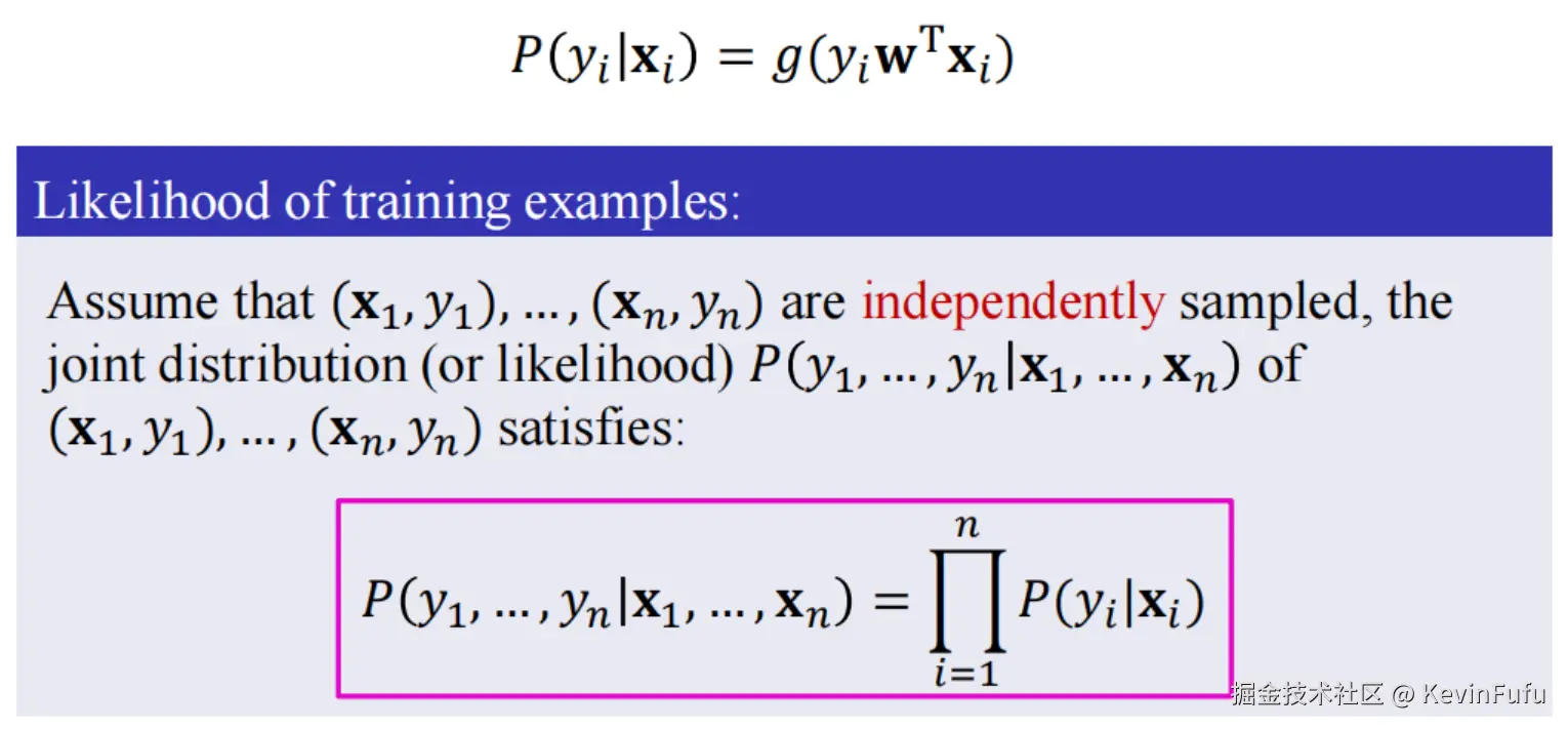 我们可以根据极大似然估计(Maximum Likelihood Estimation) 来估计出 w 的取值。