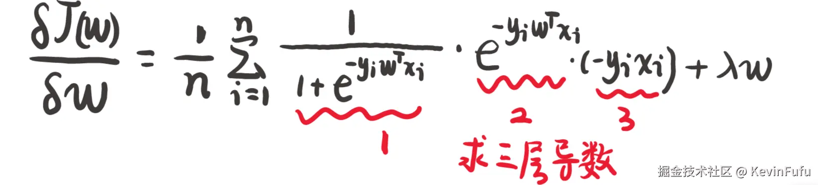 既然我们已经知道了损失函数,要求解 w 的最小值的话,我们只需要求导即可: