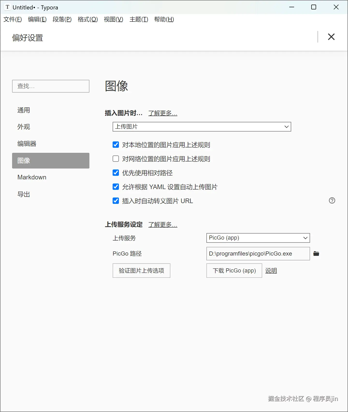 - 注意:安装软件时一定要注意不同版本之间的适配性。typora版本太低无法导入PicGo和pandoc;如果版本太高没有破解版。typora 1.3.8、picgo 2.3.0 、pandoc 2.17.1.1(上述版本相互兼容)。基本功能正常满足,版本适配。