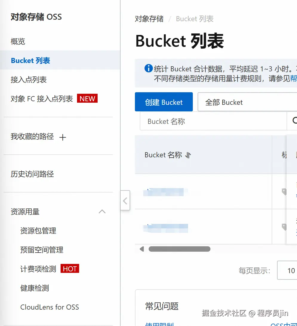 在左侧选择概览,然后在右侧创建一个新的bucket。