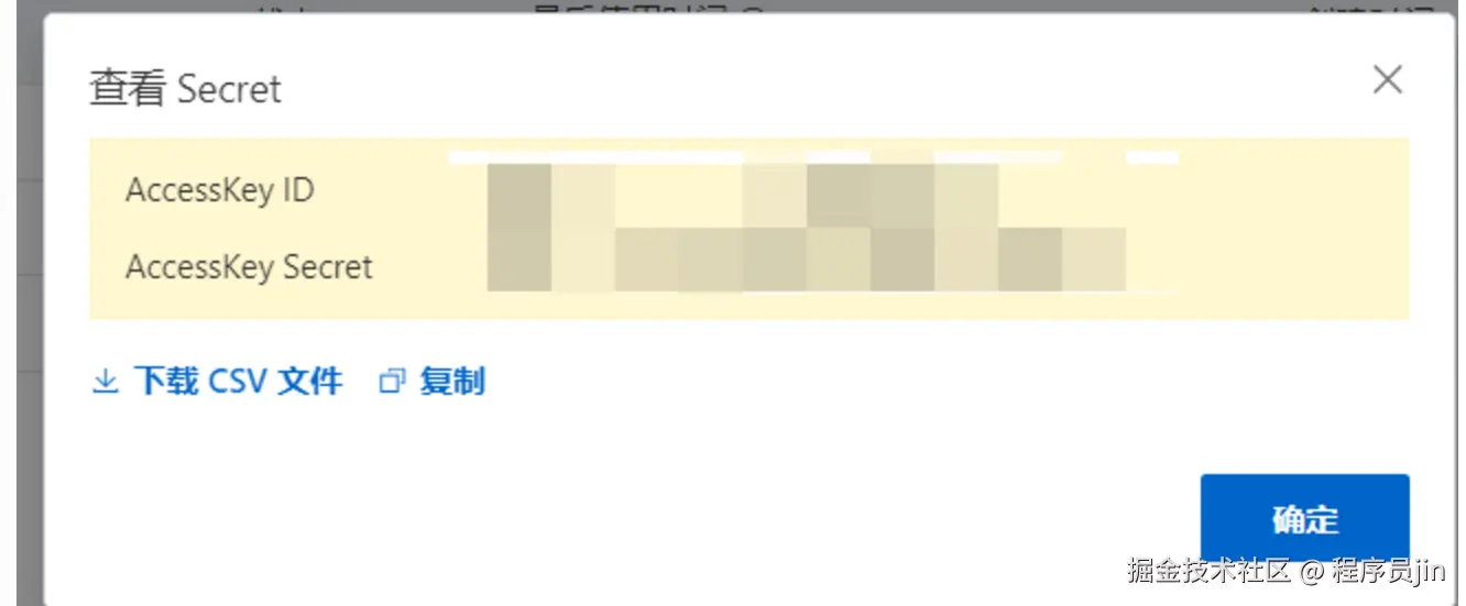 注意:AccessKeyID和AccessKeyIDSecret提提前保存,同时复制时前面是否没有空格。