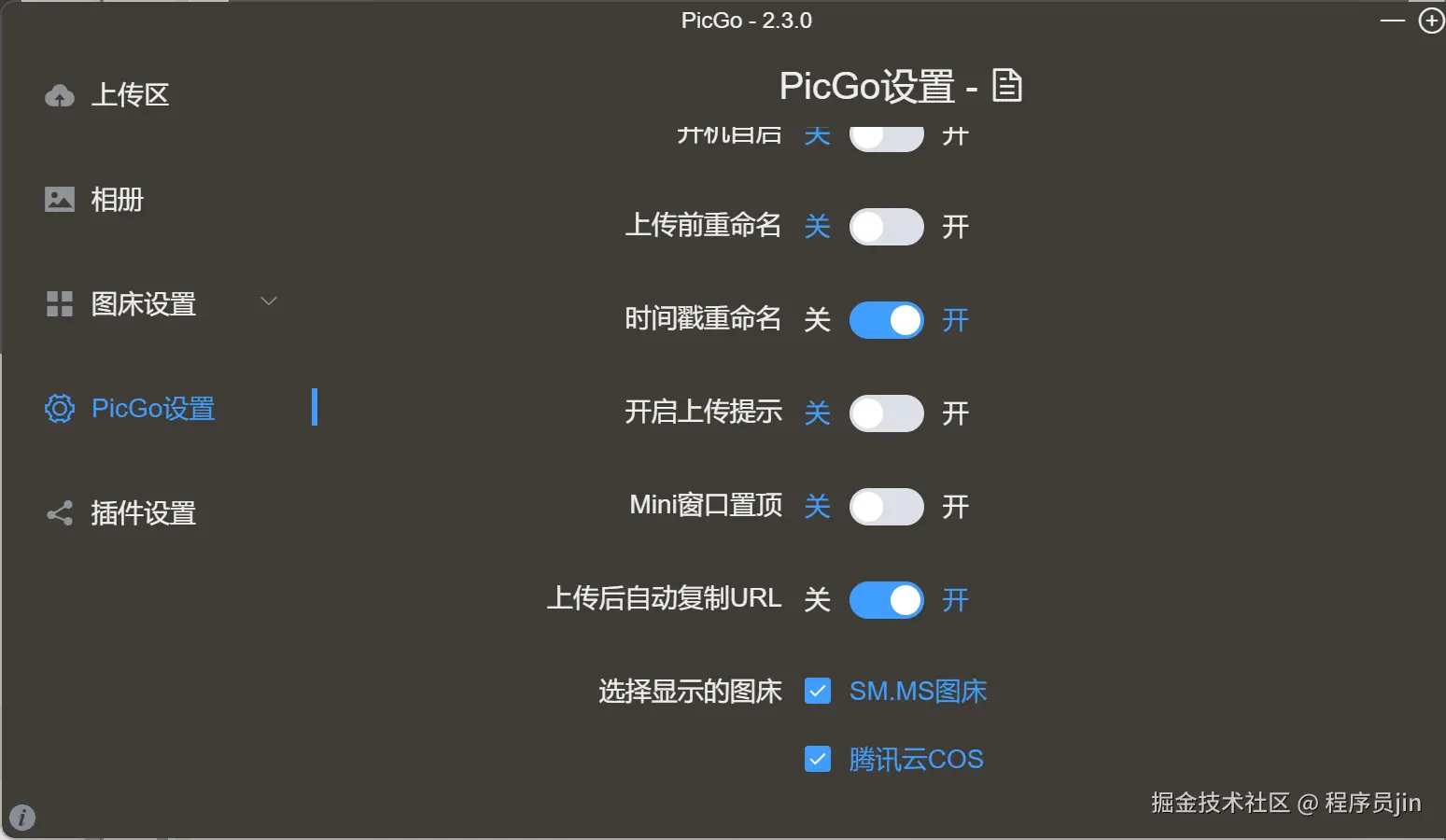 时间戳重命名:以上传时间来重命名图片,避免同名的图片无法上传(该设置不影响本地图片名)