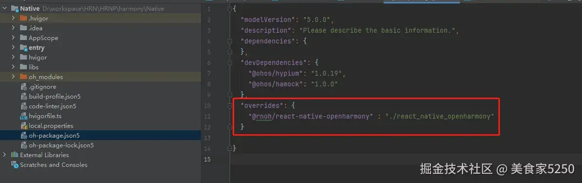 加上这行以后,如果你发现底部有红线报错了,说明这个路径是错的,看看你node_module相对于这个entry\oh-package.json5文件的正确路径即可。