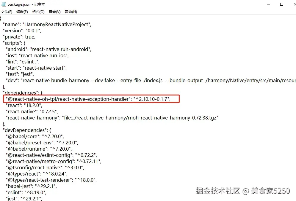 第三步是在模块的oh-package.json5中指定react-native-exception-handler的具体目录: