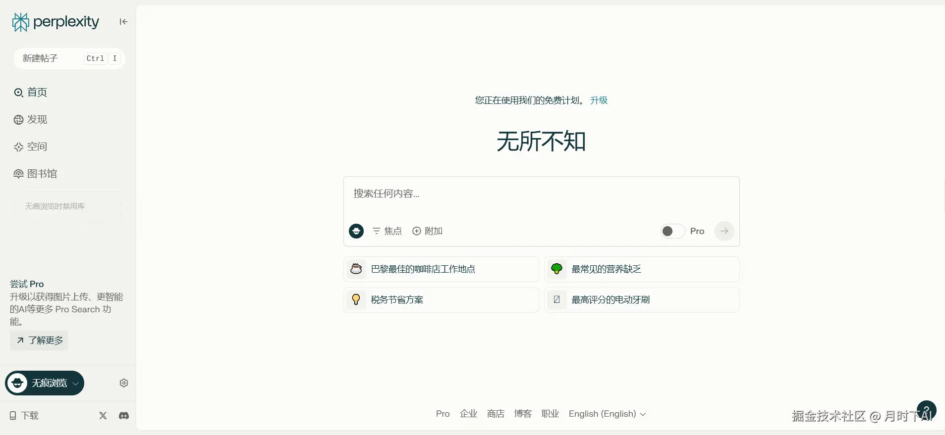 除了网页版,Perplexity 还提供了适配 Android 和 iOS 的移动端 App,以及方便的浏览器插件。对于大多数日常信息查询需求,它的免费基础版已经绰绰有余。而如果你对信息处理有更高要求,可以选择升级到 Pro 会员(每月 20 美元),享受更强大的功能和更精准的搜索结果。