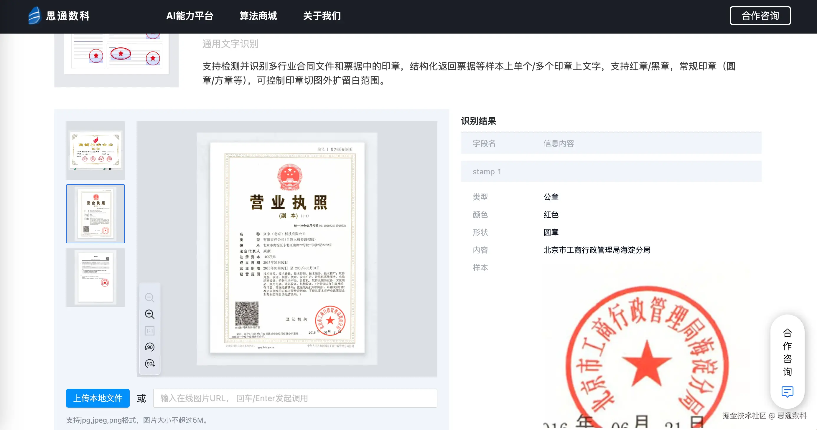 - 提供印章专用章识别功能(如合同章、发票章),用于审批流程中印章真伪检测。