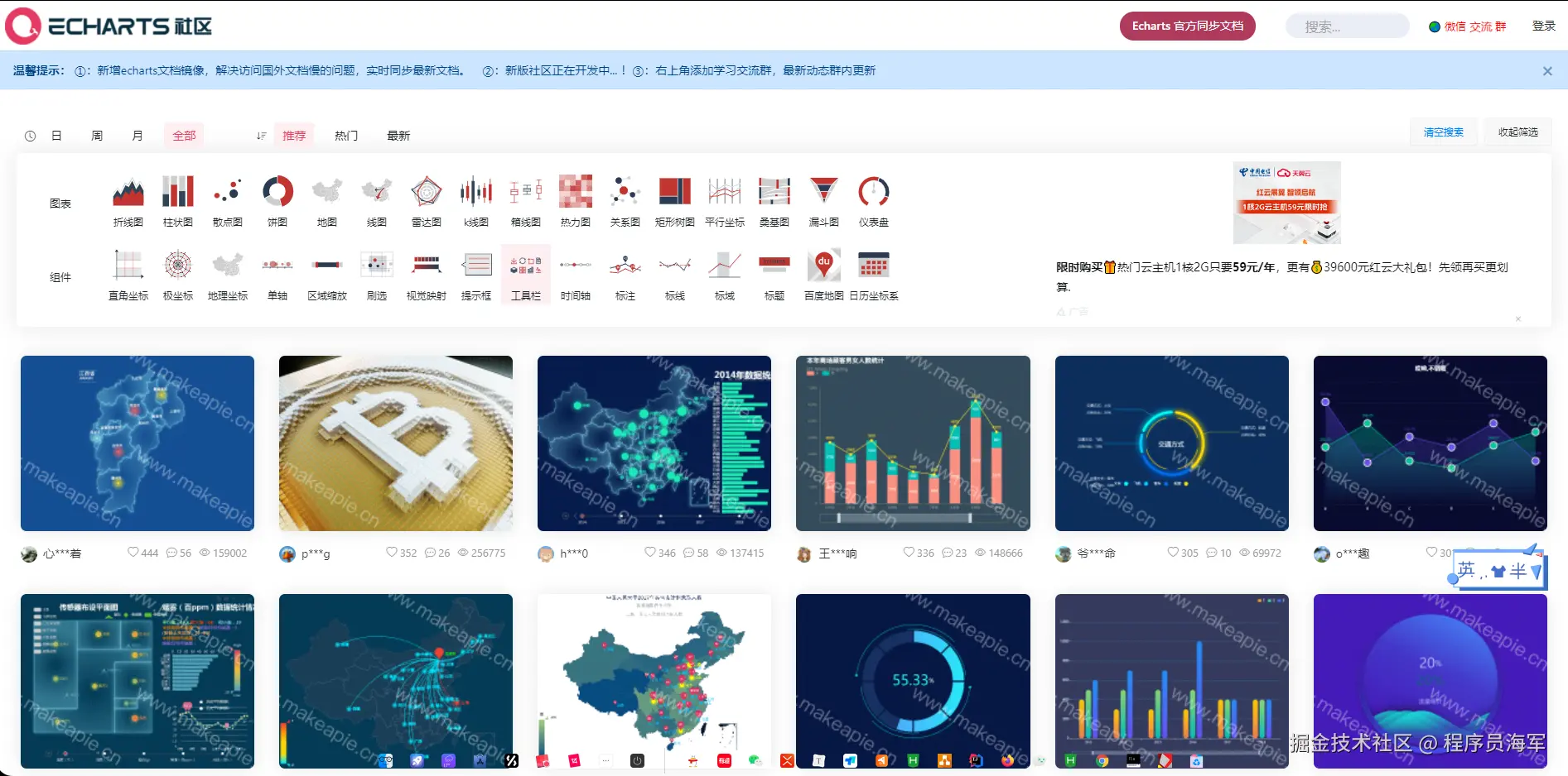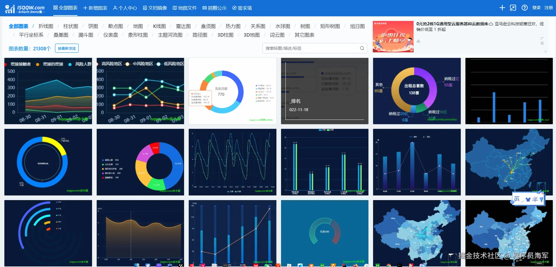 EChart 社区示例 [社区,提供了大量的示例基本可以满足任何需求]