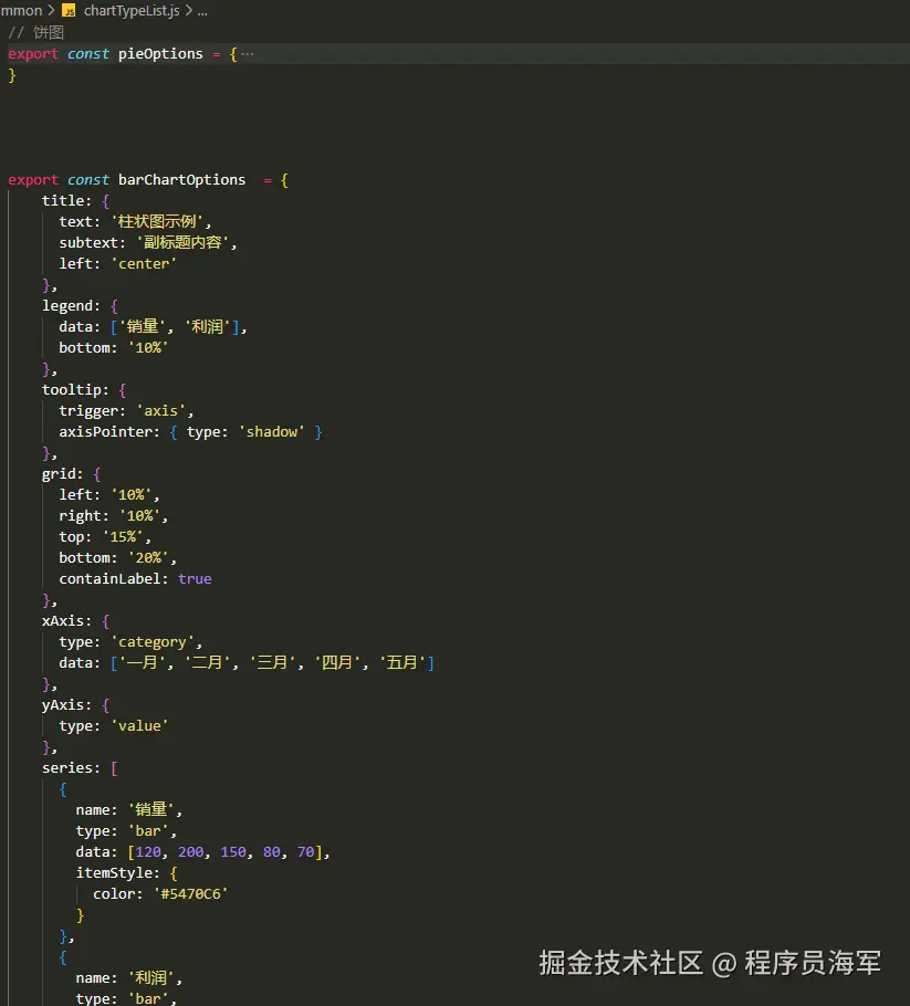 配置项代码过长,组件可读性降低。我们可以将配置项提取到单独的模块,便于复用和维护。
