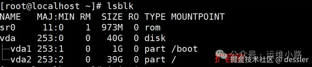 当前虚拟机的磁盘大小是40G,在系统内部是使用1G给了boot分区,39G给了根分区。