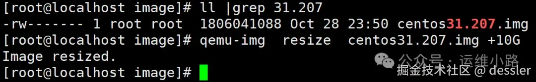 [root@localhost image]# qemu-img resize centos31.207.qcow2 +10G