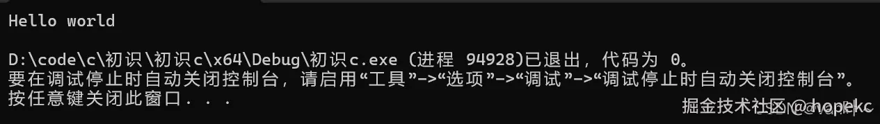 printf是一个库函数,对应的头文件是#include<stdio.h>,它的功能是在标准输出设备(一般指屏幕)上进行信息打印。上面使用printf函数打印了一串字符串。只要想打印一串字符就将它放进双引号内并传递给printf函数,printf函数可以将这串字符串打印到屏幕上