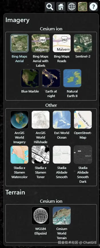 Cesium - baseLayerPicker BaseLayerPicker是Cesium提供的图层选择工具。 代码:
