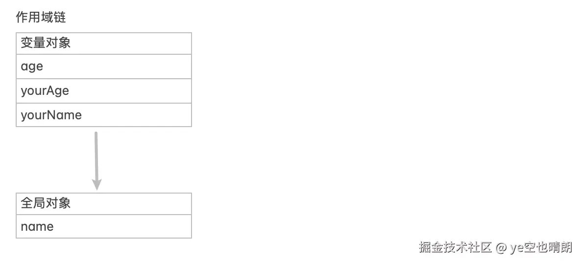 yourAge = age // 变量对象2中找到 age