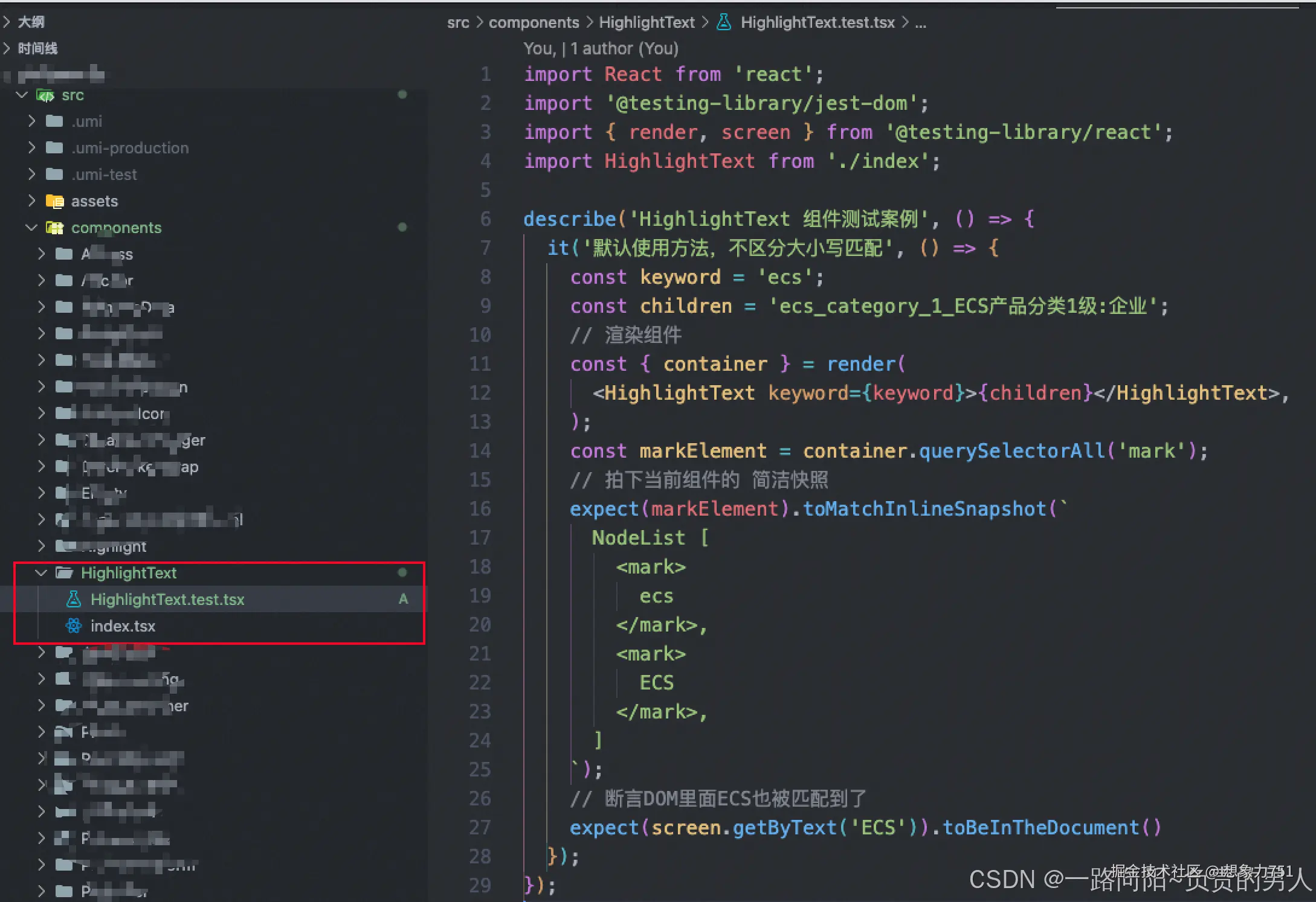对项目关键字高亮基础组件写单元测试用例
