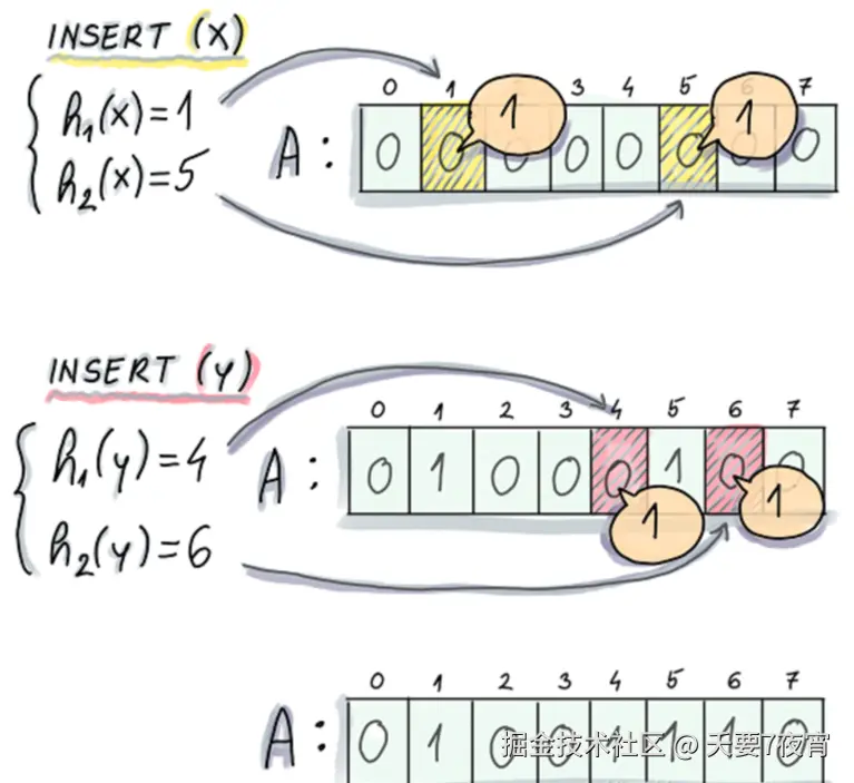 - 如果其中一个点返回是 0 ,那么这个元素一定不存在。