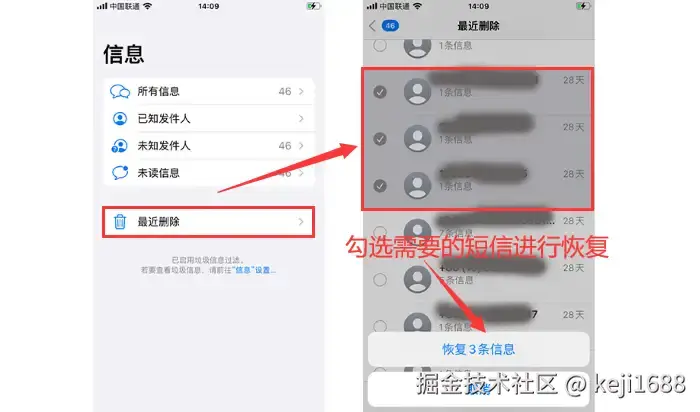恢复删除短信技巧1:最近删除,时光机器