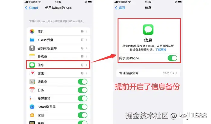 恢复步骤:首先在【iCloud云备份】中查看是否开启了【信息】的备份。然后就可以重新登录iCloud并选择包含信息的备份文件夹还原手机,如此就能恢复短信内容了。