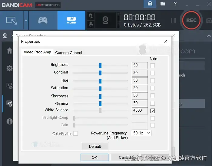 操作步骤:打开Bandicam软件,选择录制区域,并设置是否录制声音等。最后点击红色“REC”按钮开始录制。