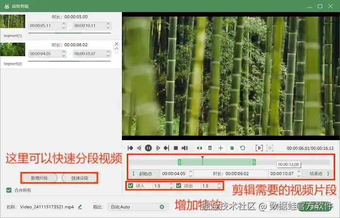 步骤3: 录制完成后,还可以使用软件自带的多媒体工具 “高级剪辑” ,对视频进行后期编辑操作,如快速分段视频、剪辑需要的视频片段等。