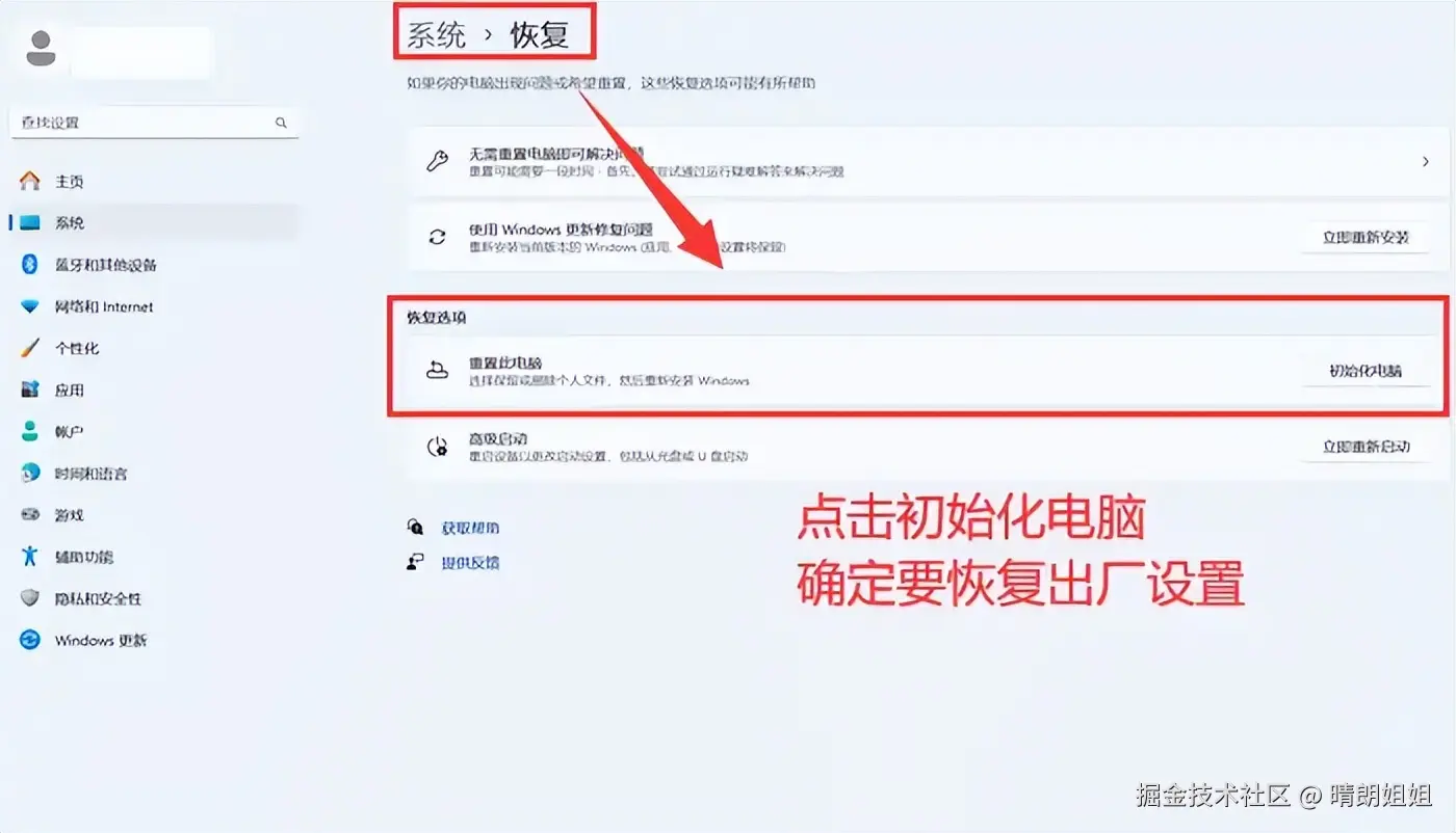 步骤:进入电脑设置,点击 【系统】>【恢复】 ,找到 【恢复选项】 ,然后点击 【初始化电脑】 ,选择你想要格式化的驱动器或所有数据,接下来跟随指引进行操作即可。
