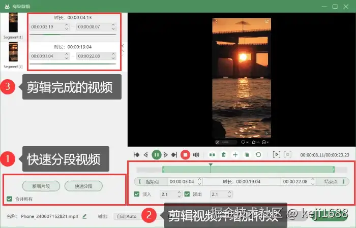 步骤4:录制完成后,软件将自动进入预览界面,您可以查看录制的视频。还可以点击进入 【高级剪辑】 页面中,对视频进行快速分段、剪辑等操作。