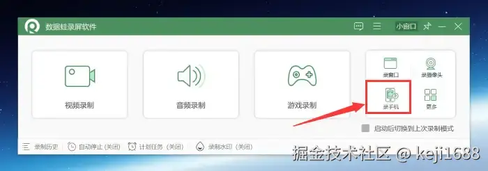 步骤1:首次使用提供新手指引和在线帮助文档,方便用户随时查看和解决问题。在软件的主界面中选择【录手机】模式。
