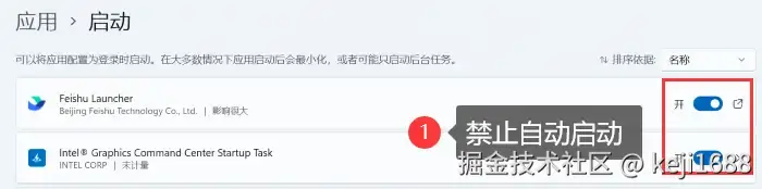 操作方法:点击【设置】,进入后点击【应用】。在【启动】选项卡右侧找到要禁用开机启动项的应用,将其按钮关闭即可。