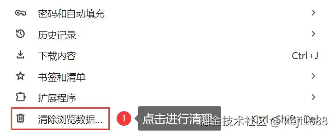 清理步骤::打开Chrome浏览器,点击右上角的三个点(菜单),选择【更多工具】>【清除浏览数据】即可。