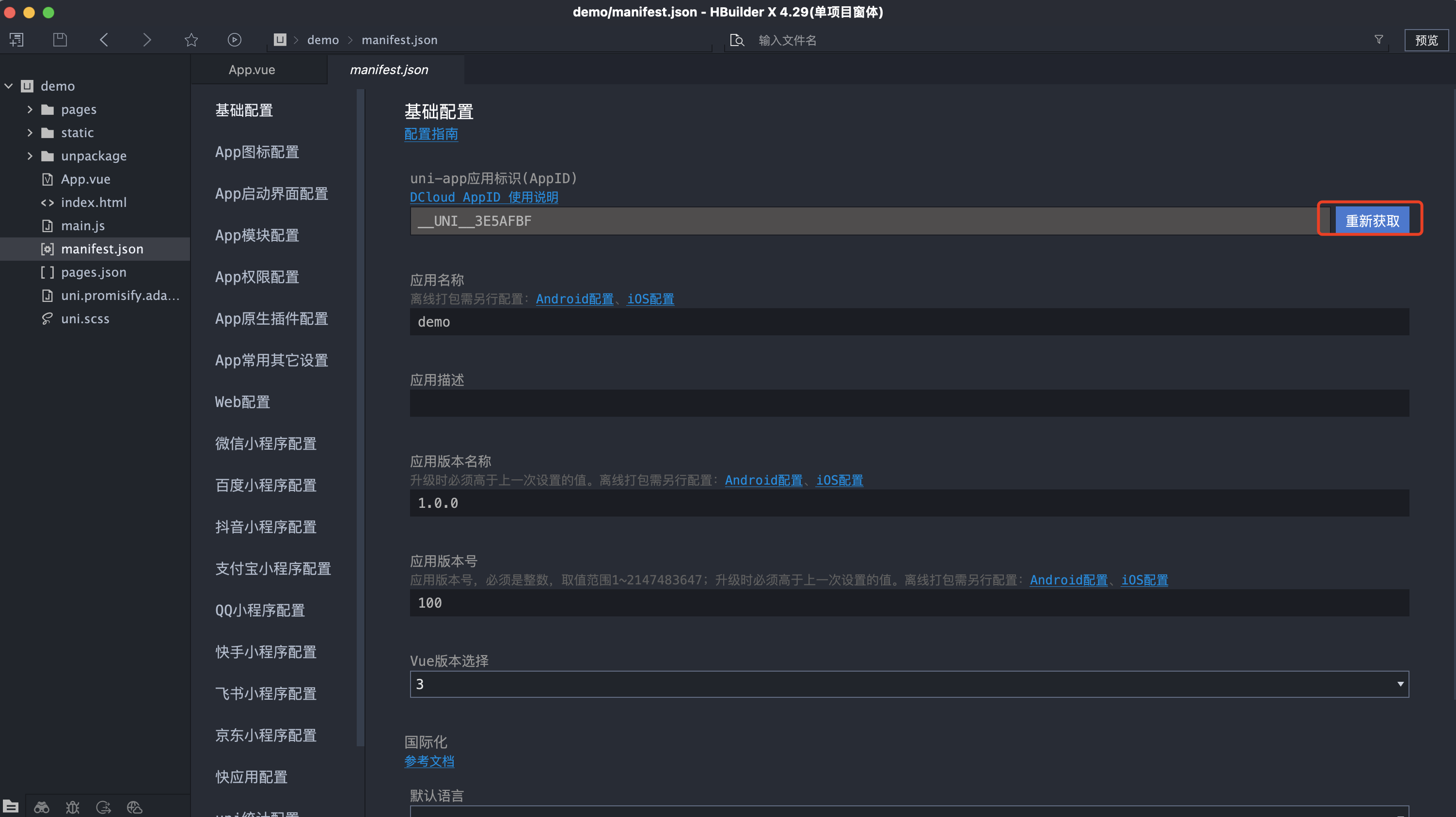 1、先获取自己项目的appId