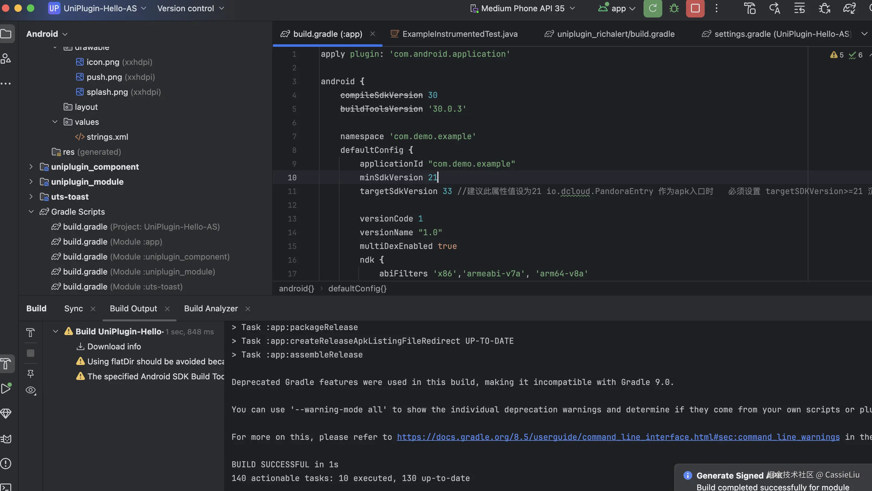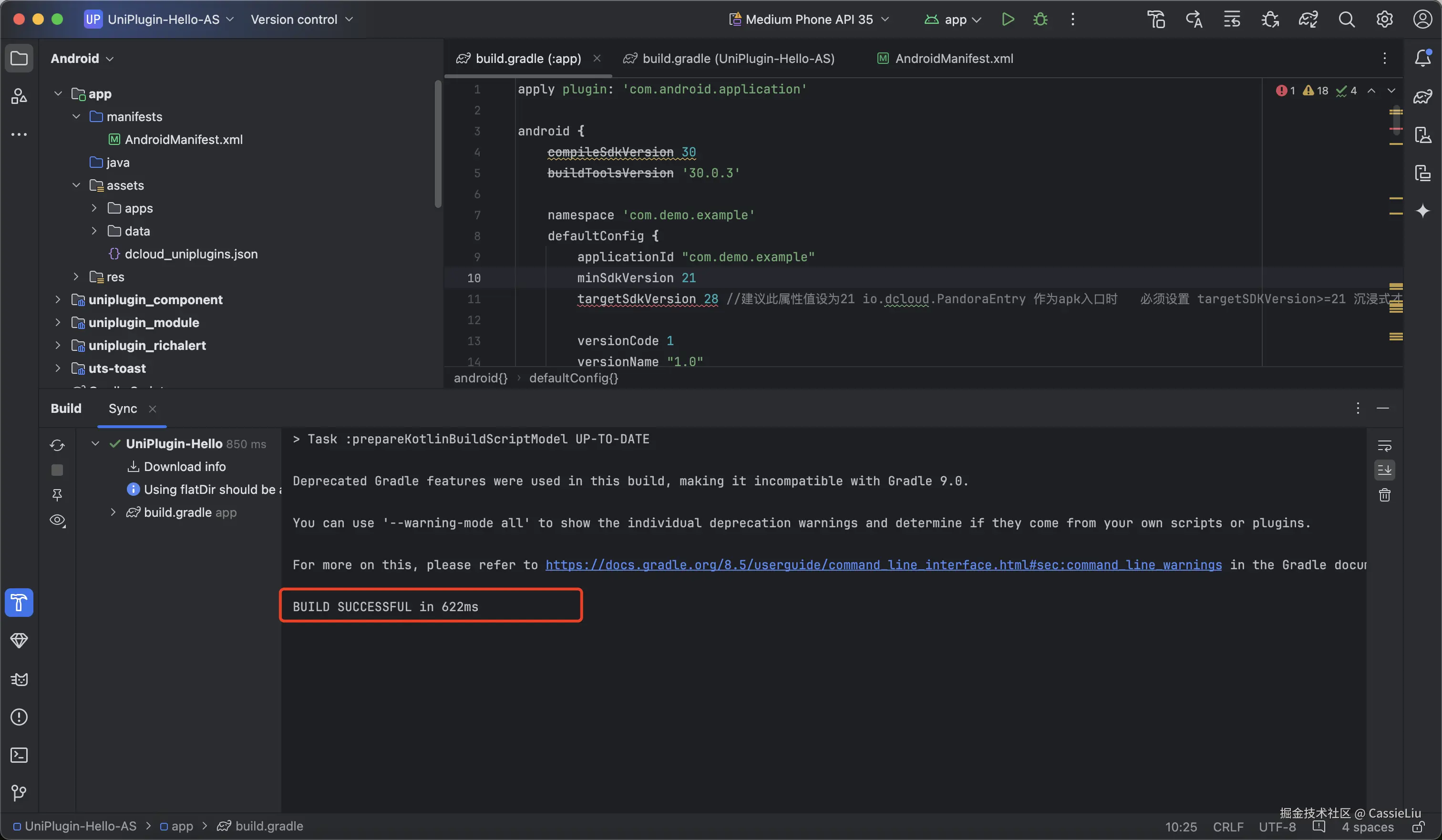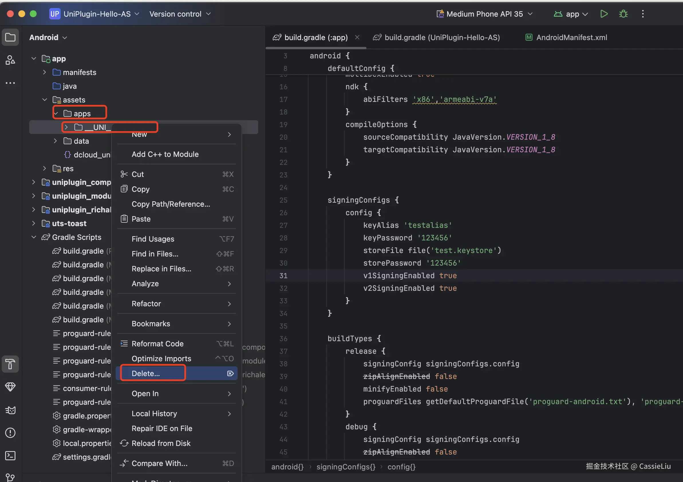 这里我们使用UniPlugin-Hello-AS 做一个demo, 将这个文件夹放到平时经常使用的workspace中, 打开Android Studio 编辑器: