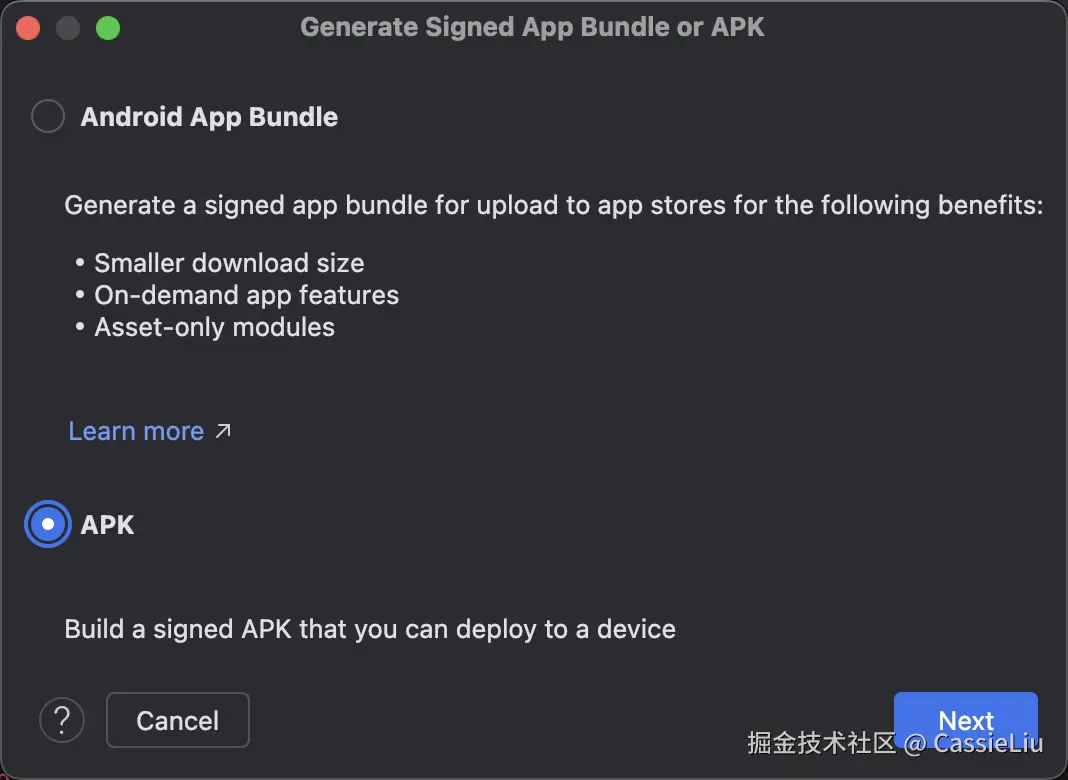 选择APK, 点击 Next