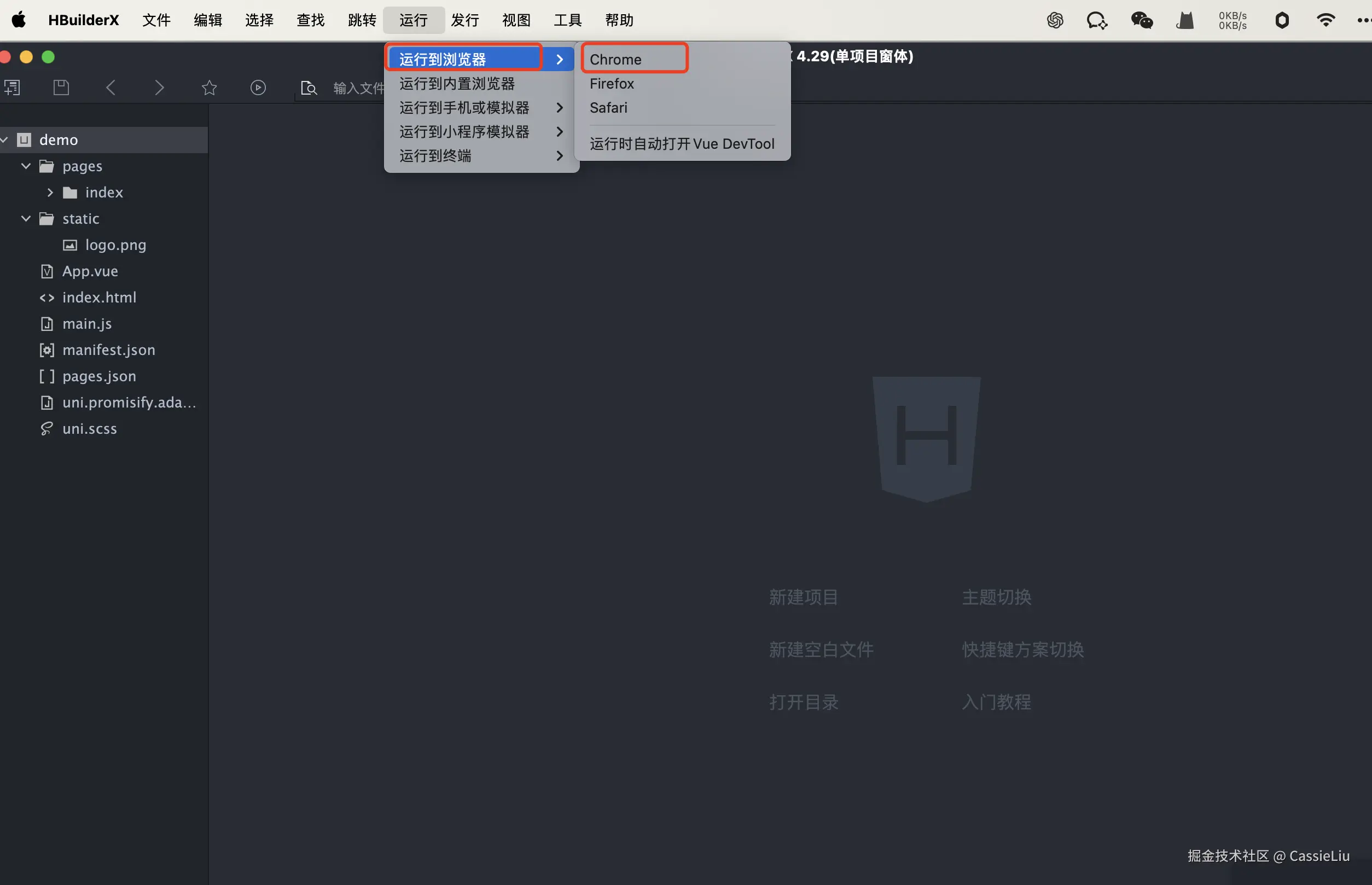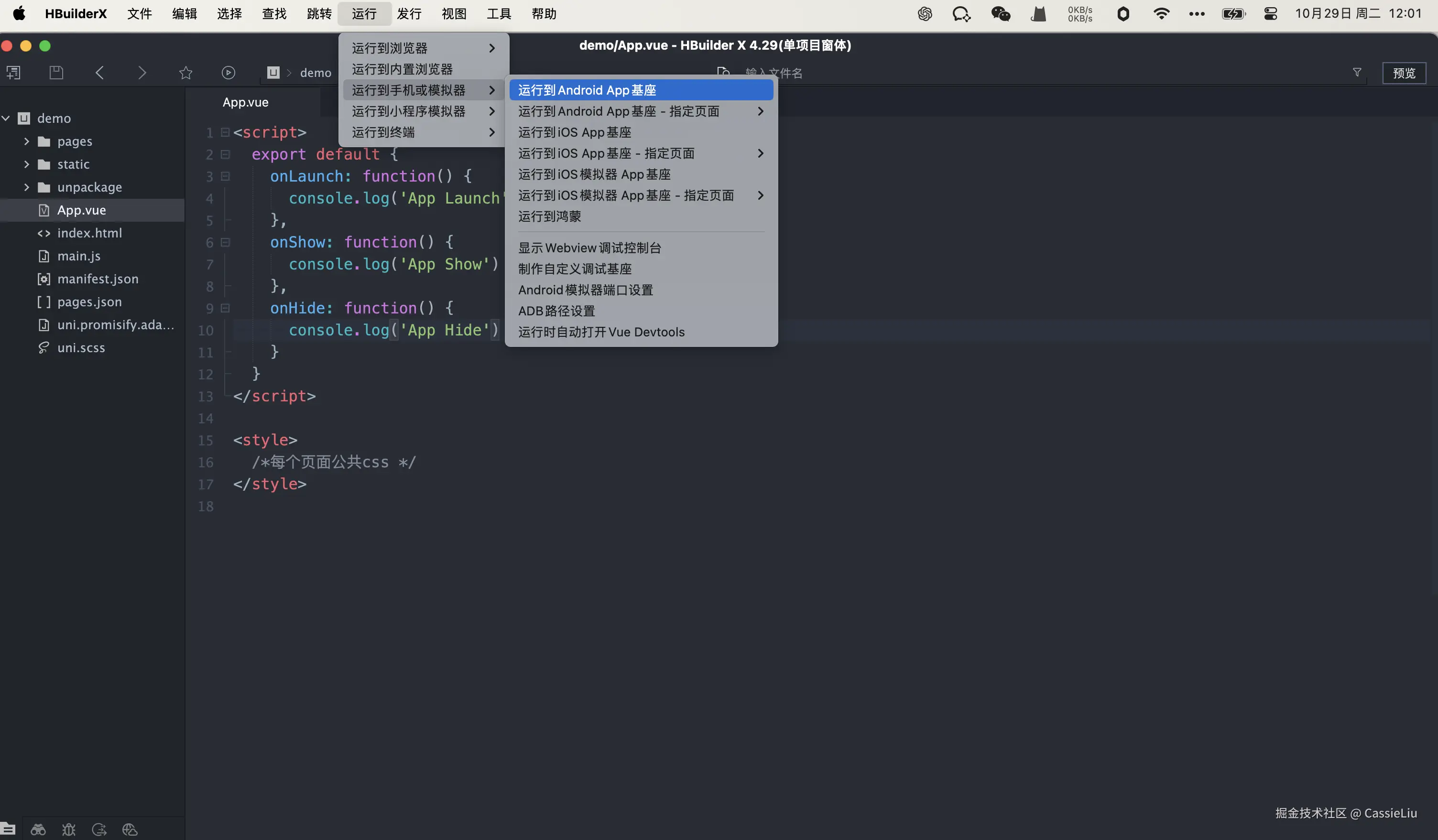当然上面只是开发经常使用, 在浏览器中可以直接看到, 但是某些api只能在真机上使用, 可以通过以下操作运行到真机上使用