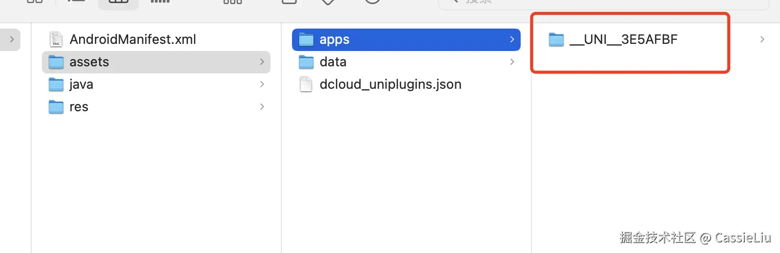 接下来, 在HBuilderX 编辑器中, 工具栏-- > 发行 → App-Android/IOS本地打包, 点击生成本地打包App 资源打包好了之后,会生成一个文件包: