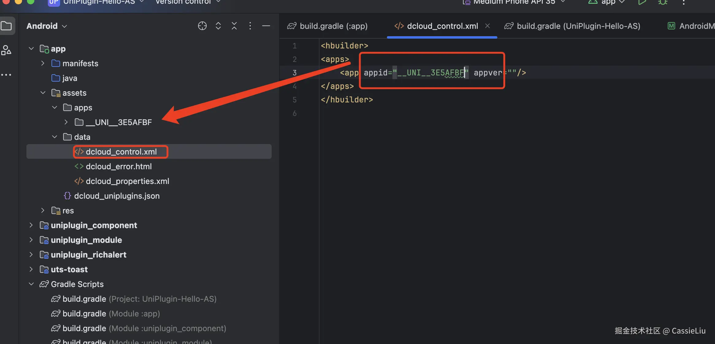 接下来在data/dcloud_control.xml 文件中将我们的文件夹名称放入到appid里面去