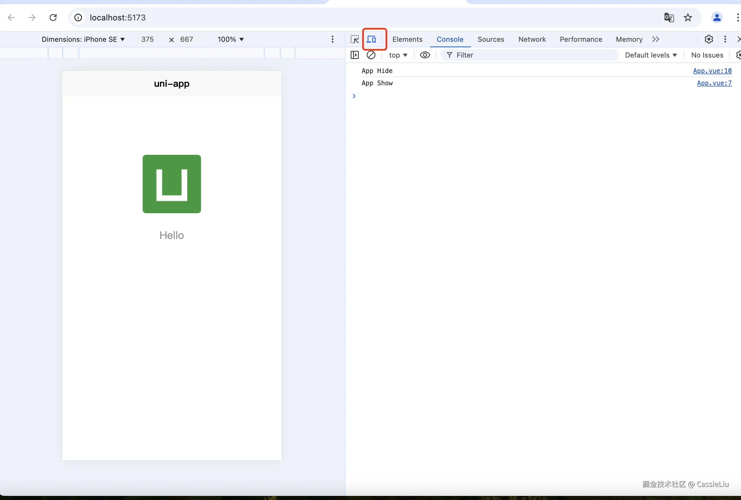浏览器中F12, 并且切到手机模式, 就可以看到我们运行出来的代码啦~