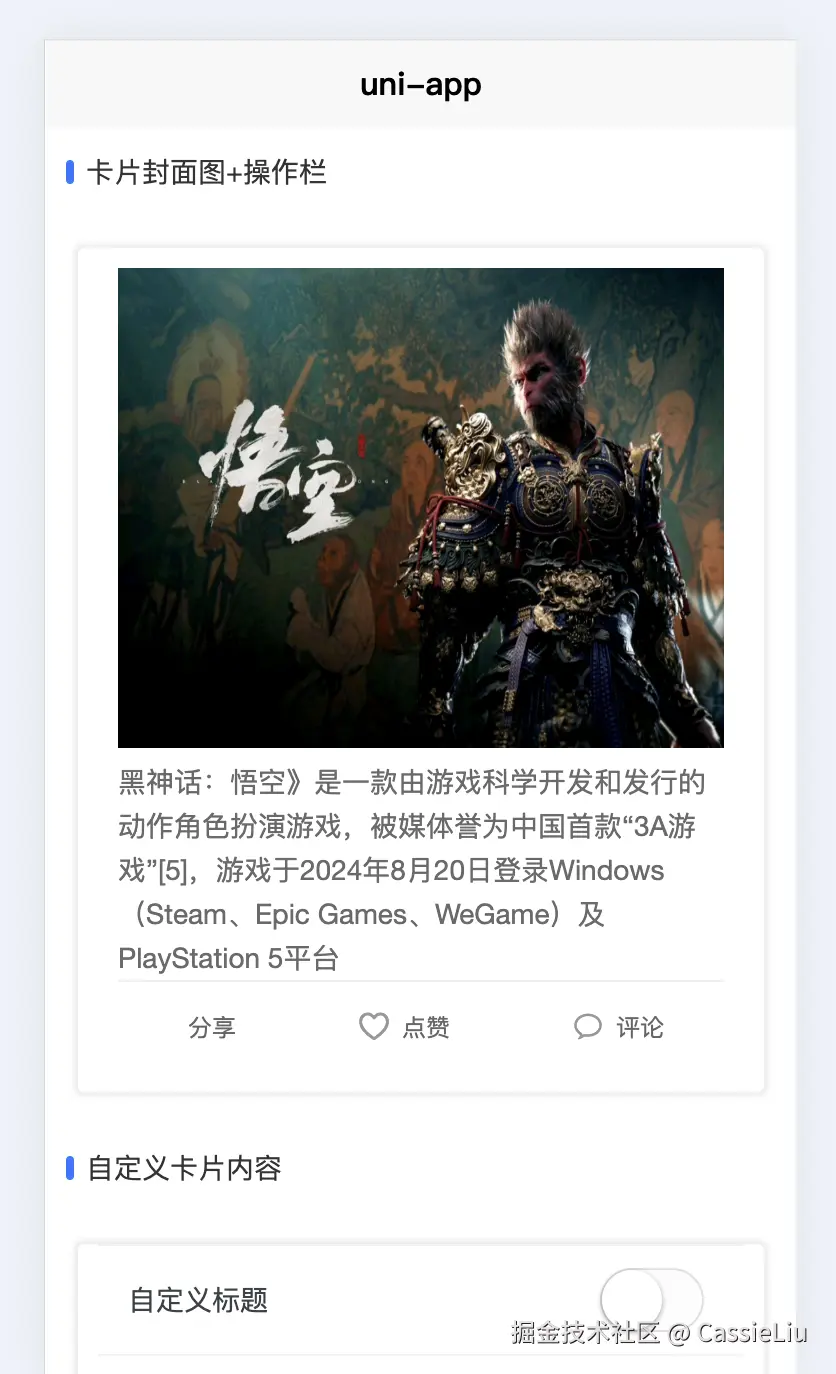 我们在代码里面引入uni-ui的模板,可以查看官网: uniapp.dcloud.net.cn/component/u… ,引入对应的ui模块, 然后写一些demo, 页面展示: