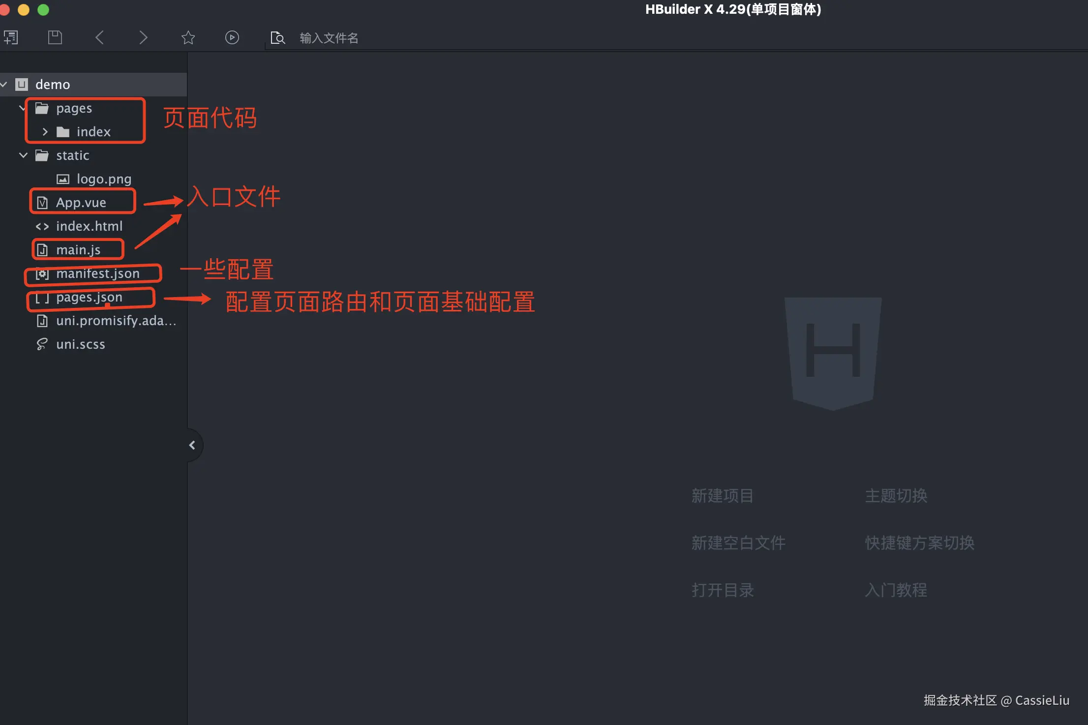 新建好了项目,一下是一些简单的说明: