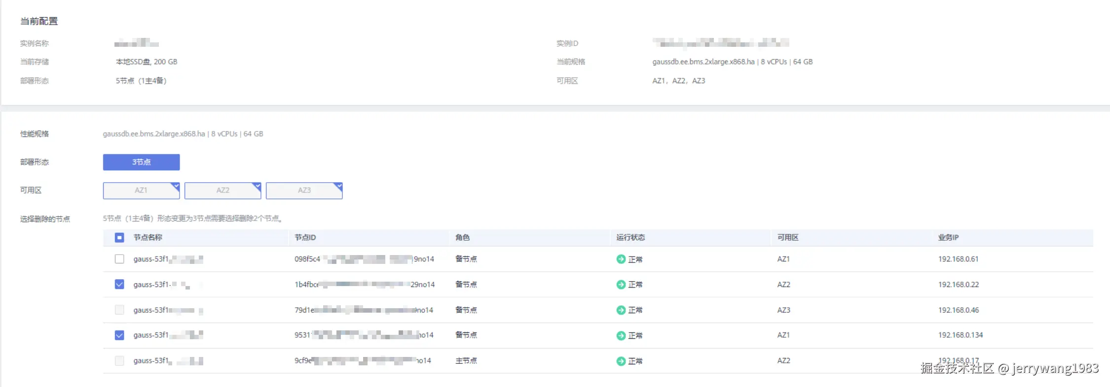 若为缩副本,选择待删除的节点,剔除出实例。