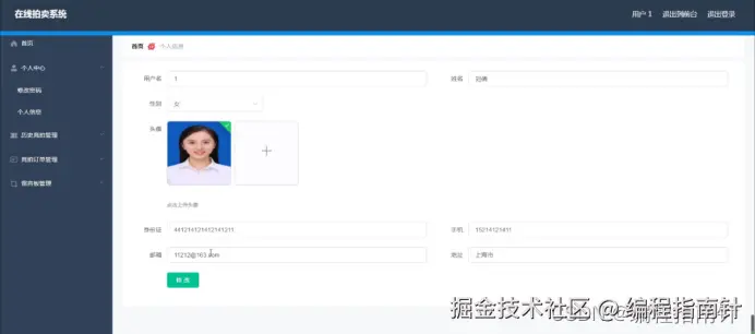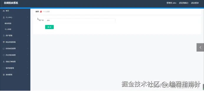 用户登录进入在线拍卖系统可以查看首页、个人中心、历史竞拍管理、竞拍订单管理、留言板管理等内容,如图5-12所示。