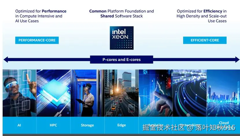 由于P核与E核存在较大的参数差异,因此在使用场景方面也有很大的不同。P-core(性能核)主要应用于人工智能、高性能计算以及存储数据服务等场景,而E-core(能效核)则主要应用于云计算、网络等对高密度和横向扩展的工作场景。