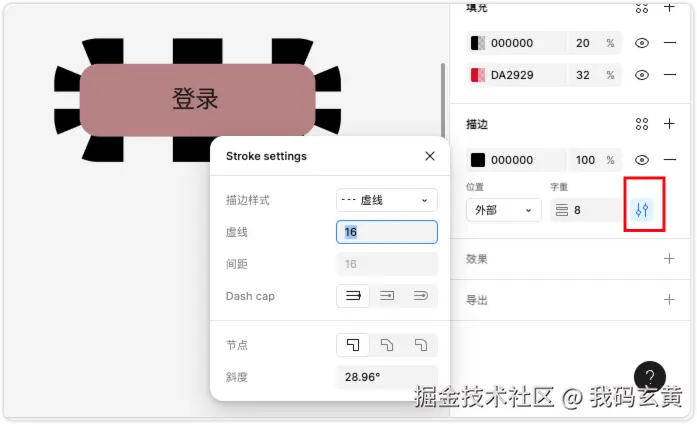 跟上面的操作相同,描边相当于是前端开发中的 border 属性