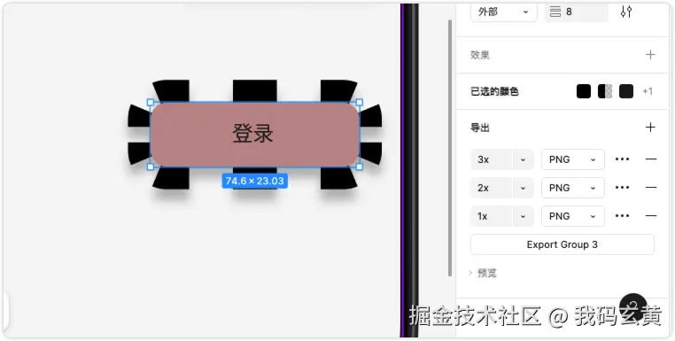 我们将登录按钮和文字做成一个组,然后连点三次导出的加号,可以看到如下: