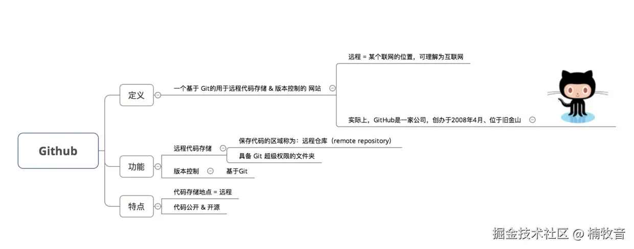 远程仓库是指我们代码存储在服务器的地方,一般都是在GitHub上,这个仓库是我们整个团队中所有人都可以访问的地方。