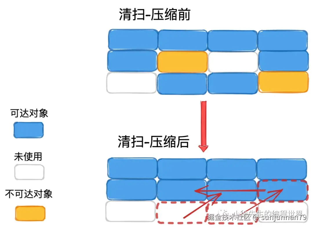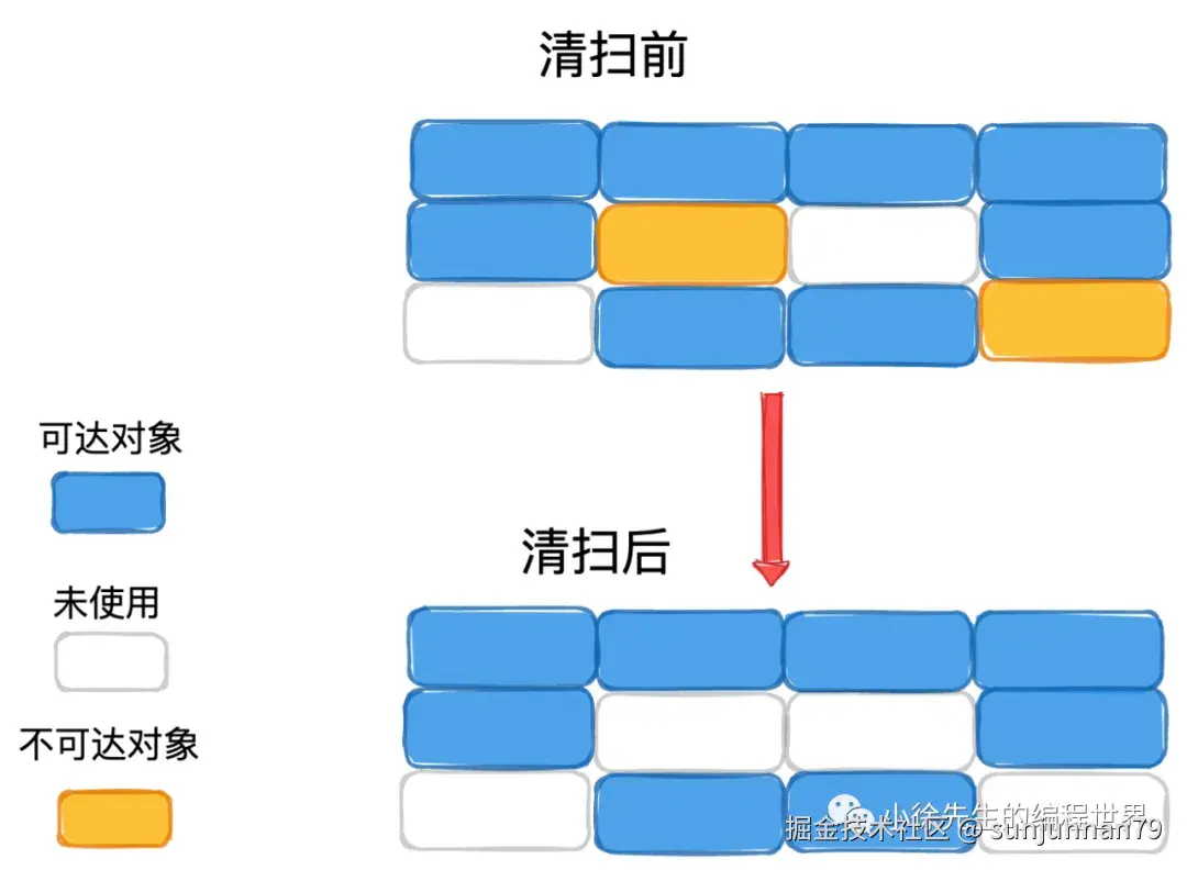 外部碎片:当程序释放内存时,空闲的内存块被分散在整个内存空间中。这种情况下,尽管总的空闲内存足够大,但由于这些空闲内存块分散在不同的区域,无法为程序分配一个大块的连续内存,导致内存利用率下降。