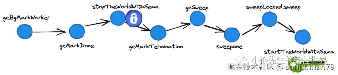 在gcMarkTermination方法中,还会通过g0调用gcControllerCommit方法,完成下轮触发GC的内存阈值的设定.