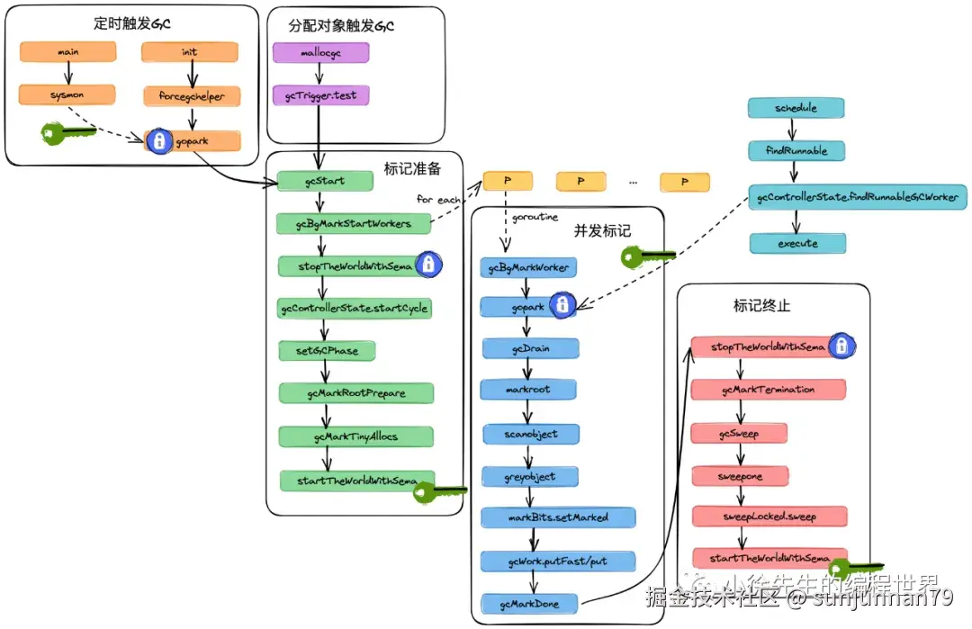 在新一轮尝试触发 GC 的过程中,对于gcTriggerHeap类型的触发事件,会调用gcController.trigger方法,读取到gcControllerState.gcPercentHeapGoal中存储的内存阈值,进行触发条件校验.