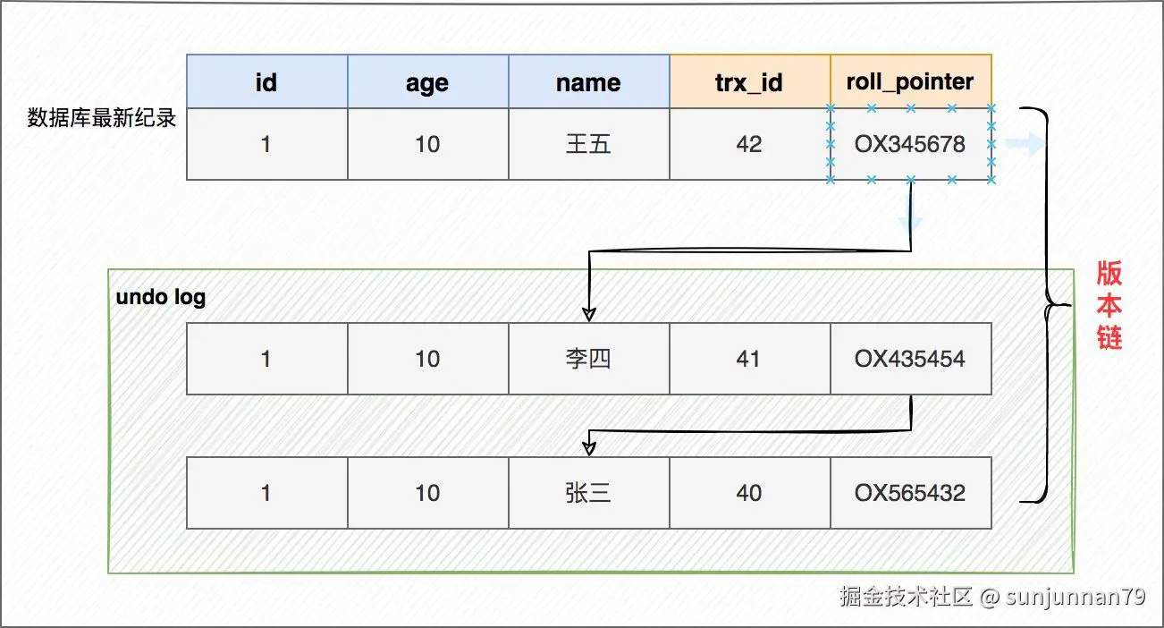 多个事务并行操作某一行数据时,不同事务对该行数据的修改会产生多个版本,然后通过回滚指针(roll_pointer),连成一个链表,这个链表就称为版本链(undo log)。