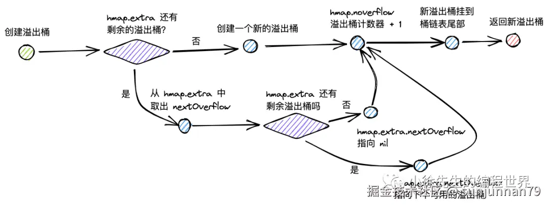 II 倘若 hmap 已经没有空闲溢出桶了,则创建一个新的溢出桶.